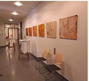 Auf Kunstwerke in Räumen öffentlicher Gebäude stößt man häufig nur per Zufall. "Bilder so bunt wie das Leben" (KSTA) stellten die Künstler/innen des KMK im Bezirksrathaus Köln-Nippes aus und überraschten auch zufällig vorbeikommende Besucher.