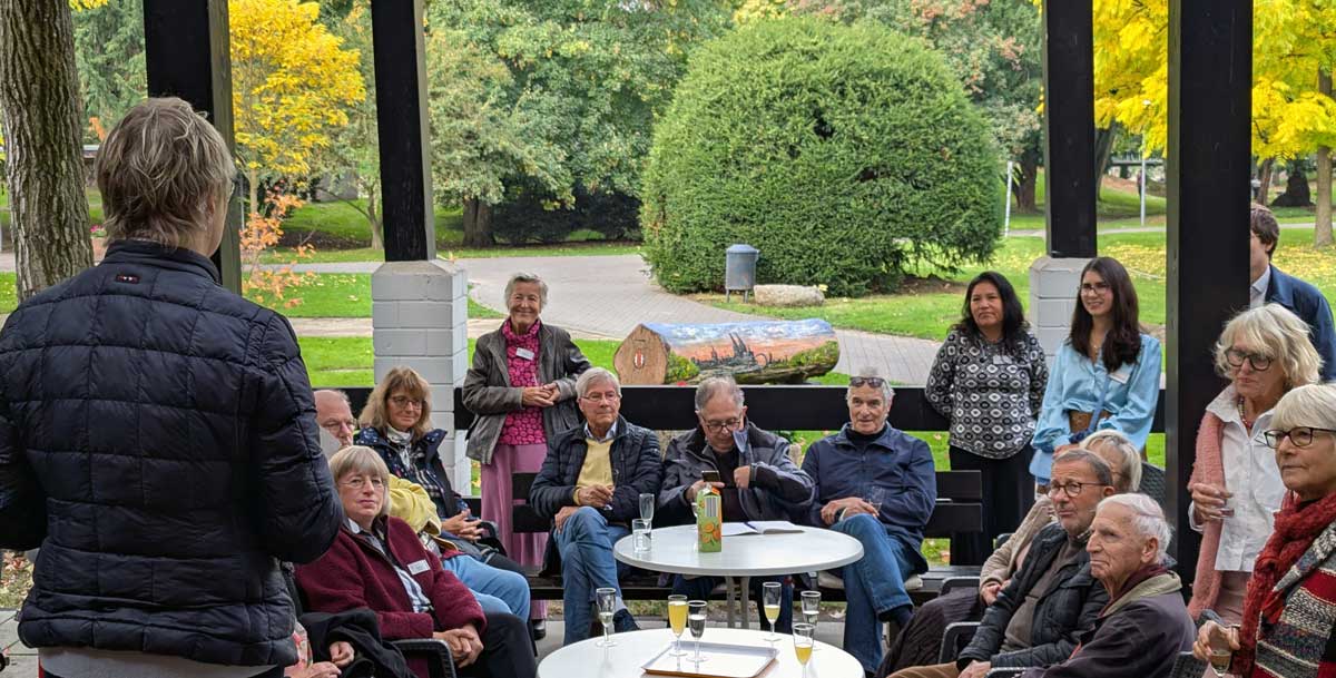 Den Widrigkeiten des kalten Windes trotzten die Mitglieder und Gäste bei einem kleinen Buffet, Getränken und angeregter Unterhaltung bei strahlend blauem Himmel.
