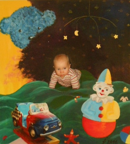 Mit Begeisterung habe ich zunächst meine 5 Enkelkinder in Öl, Acryl, Wasserfarben, Tusche und Kreide auf Papier und Leinwand gebracht.