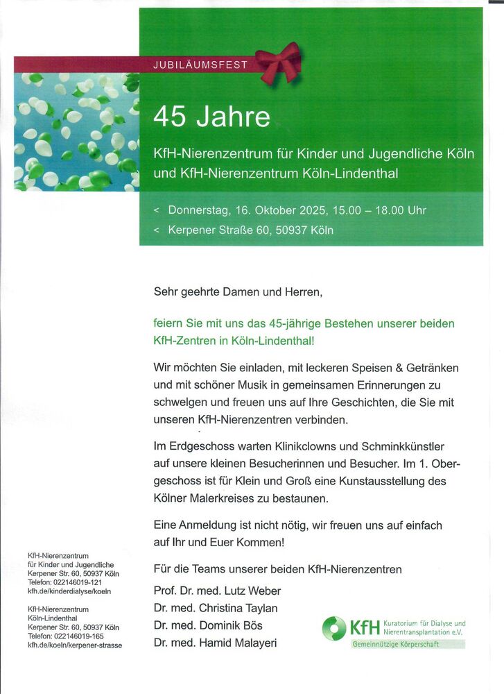 Künstler/innen des KMK bringen ihre Kunstwerke zu kranken Menschen und laden ein zum Jubiläumsfest "45 Jahre KFH-Nierenzentrum":